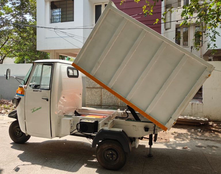 The advanced EV designed for Solid Waste Management efficiency. Dual door design enables quick side and rear unloading, improving segregation handling and optimizing daily waste routes.